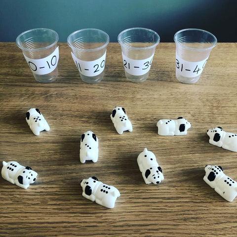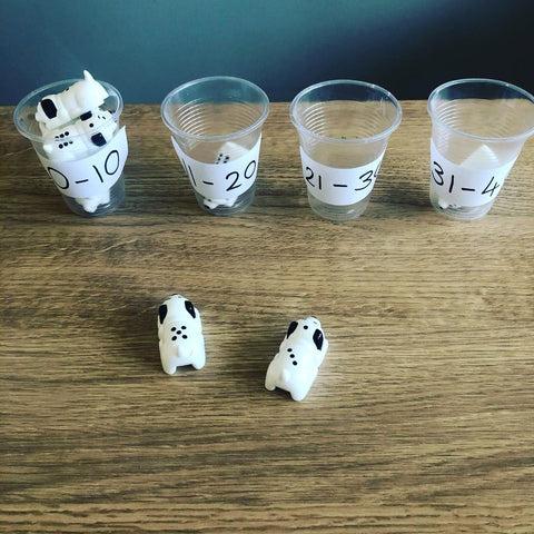 • some cups labelled 0-10, 11-20, 21-30 and 31-40