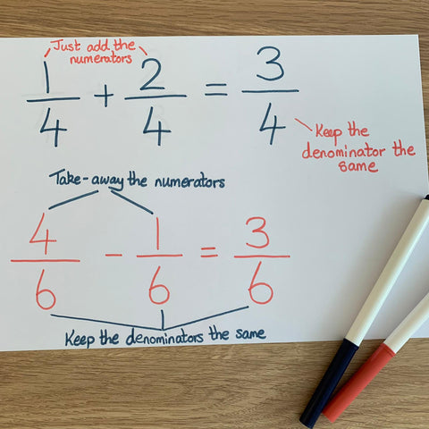 For a card game to revise some of the key things about fractions (numerator, denominator, equivalents and adding/subtracting) just click here, download and play. Make sure you select the correct year group for your child as I have tailored the questions to suit what they will learn at school.
