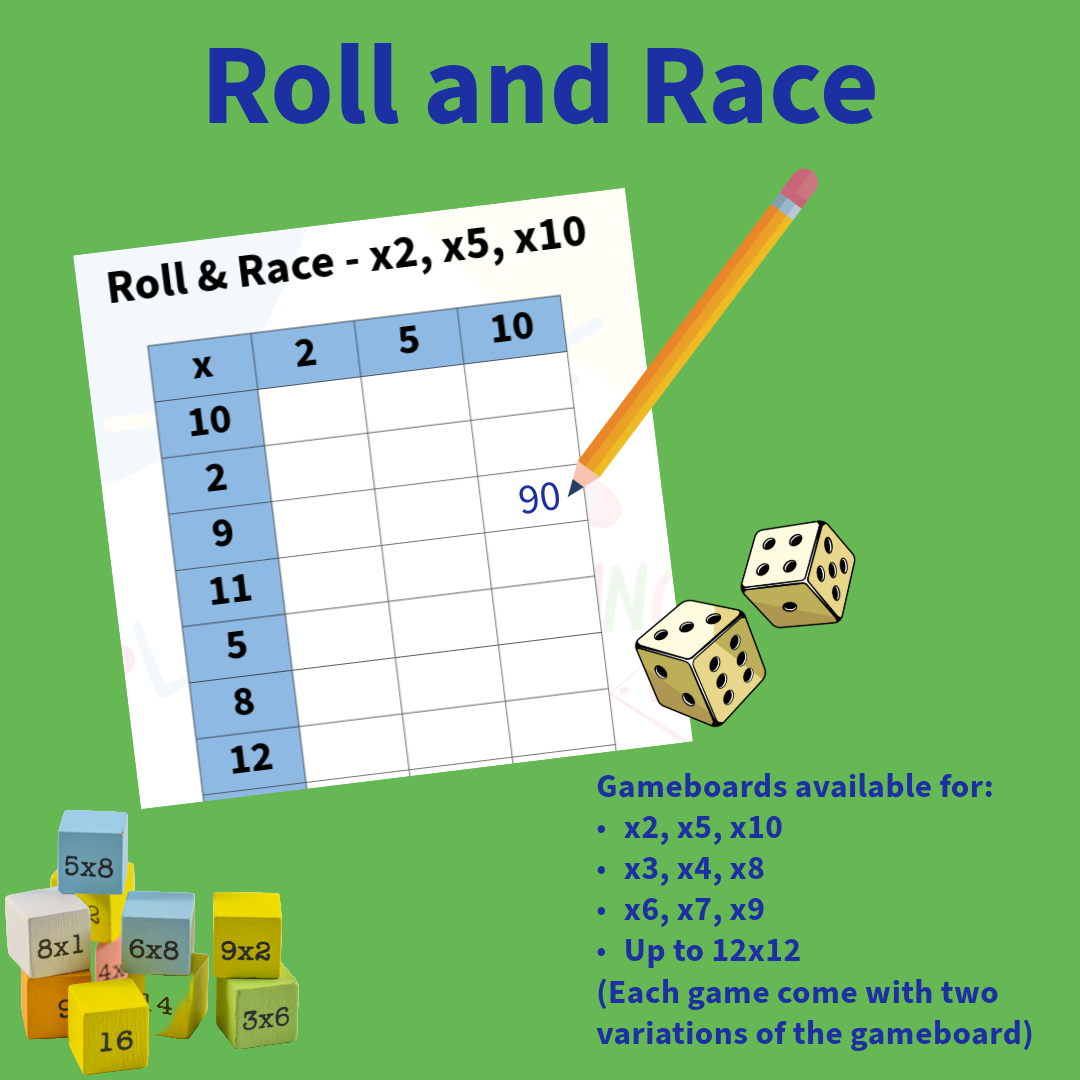 Play Roll & Race to transform times table practice into an exciting classroom or family activity!
